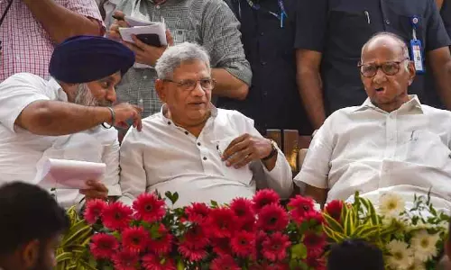 காங்கிரஸ் அடங்கிய எதிர்க்கட்சி அணியை உருவாக்க வேண்டும் என்று வலியுறுத்தி நிதிஷ்குமார், சரத்பவார், யெச்சூரி ஒரே மேடையில் பங்கேற்றனர்.