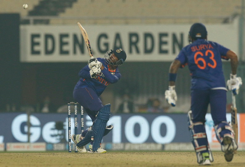 பின்னர் ஜோடி சேர்ந்த பண்ட் மற்றும் சூர்யகுமார் யாதவ் அணியை இக்கட்டான சூழ்நிலையில் இருந்து மீட்க போராடினர். பண்ட் 8 ரன்னில் நடையை கட்டினார். அடுத்து வந்த வெங்கடேஷ் அய்யர் அதிரடியாக விளையடினார். சூர்யகுமார் யாதவ் 1 சிக்சர் 5 பவுண்டரிகளுடன் 34 ரன்கள்(18 பந்து) எடுத்து அணியின் வெற்றிக்கு வித்திட்டார்.