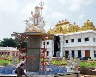 இந்த நிலையில் பாரத மாதா கோவில் முன்பு நேற்று 32 அடி உயரத்தில் தவக்கோலத்தில் சிவபெருமான் இருப்பது போன்ற சிலை நிறுவப்பட்டது. சிவபெருமான் தலையில் இருந்து கங்கை நதி பாய்வது போல இது வடிவமைக்கப்பட்டுள்ளது. இந்த சிலை அமைந்துள்ள பீடம் 20 அடியிலும், சிவபெருமான் 12 அடியிலும் அமைக்கப்பட்டுள்ளன.