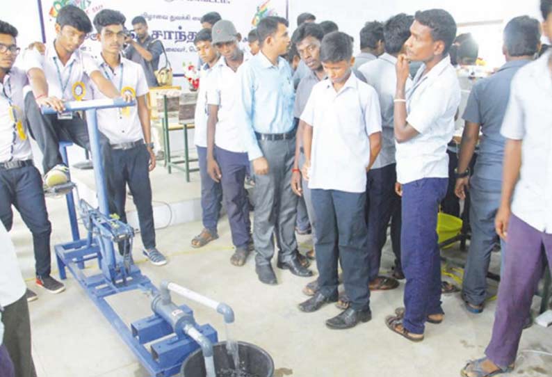 சைக்கிள் இயங்கும் விதத்தை அடிப்படையாக கொண்டு நீர்நிலைகளில் உள்ள தண்ணீரை இரைத்து கொடுக்கும் எந்திரம் மற்றும் தேர்வு அறை உள்ளிட்ட செல்போன் தடை செய்யப்பட்ட பகுதியில் விதியை மீறி இயக்கப்படும் செல்போன்களை கண்காணிக்கும் கருவி, பழைய இரும்பு பொருட்களை கொண்டு தயாரிக்கப்பட்ட சொகுசு கார், இளநீரில் துவாரம் இடும் எந்திரம் உள்ளிட்ட 36 படைப்புகள் காட்சிக்காக வைக்கப்பட்டிருந்தன. பெரம்பலூர் மாவட்ட அரசு பாலிடெக்னிக், பொறியியல் கல்லூரிகளை சேர்ந்த மாணவ,மாணவிகள் ஆர்வத்துடன் வந்து கண்காட்சியை பார்வையிட்டு சென்றனர். இதில் அரசு தொழிற்பயிற்சி நிலைய மண்டல இணை இயக்குனர் டான்போஸ்கோ, கீழக்கணவாய் அரசு தொழிற்பயிற்சி நிலைய முதல்வர் உதய சங்கர் உள்பட பேராசிரியர்கள் சிறந்த படைப்புகளை தேர்வு செய்தனர்.