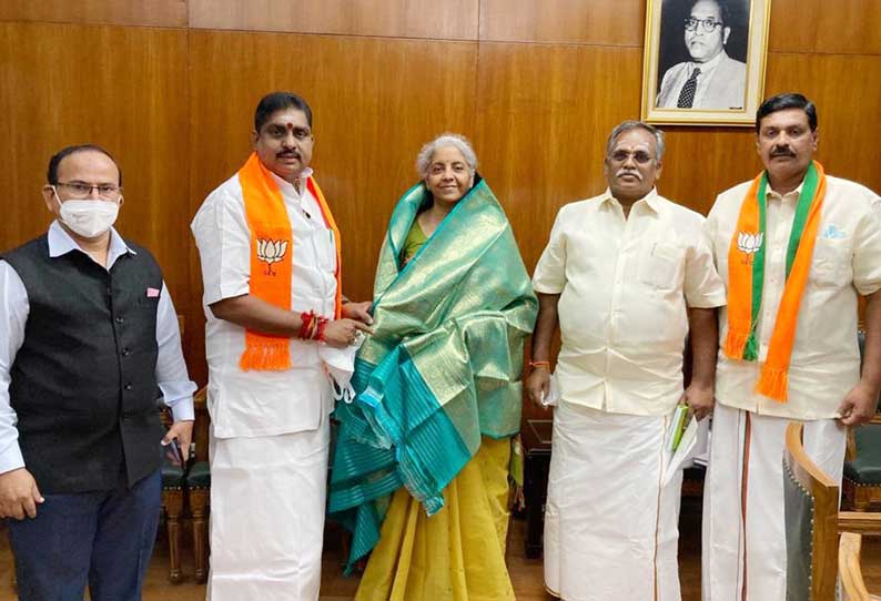 முன்னதாக அவர்கள் மத்திய நிதி மந்திரி நிர்மலா சீதாராமனை சந்தித்து பேசினர். அவரிடம், புதுவை மாநிலத்தில் ஒருங்கிணைந்த புதிய சட்டசபை வளாகம் கட்டுவதற்கு மத்திய அரசின் அனுமதி மற்றும் நிதியுதவி கோரி முதல்-அமைச்சர் ரங்கசாமி அளித்த கடிதத்தையும் வழங்கினார்கள். கடிதத்தை பெற்றுக்கொண்ட நிதி மந்திரி நிர்மலா சீதாராமன், இதுதொடர்பாக ஆவன செய்வதாக உறுதியளித்தார்.