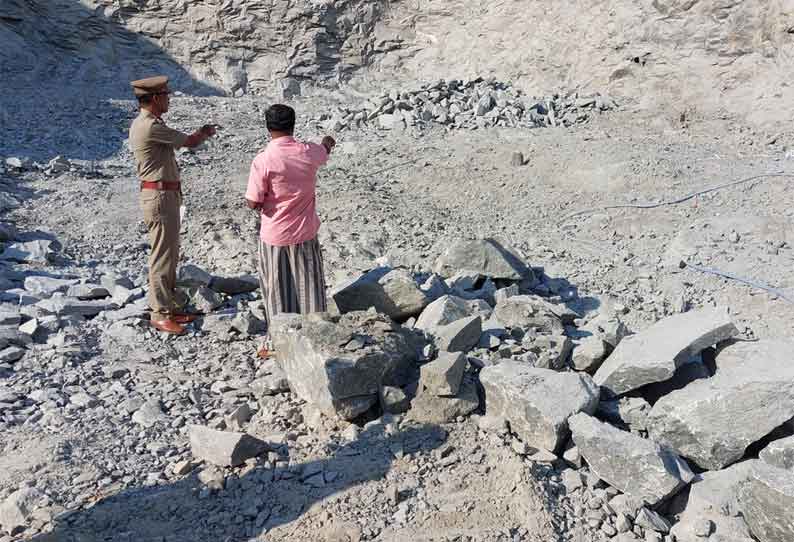 இதில் வடிவேலை தவிர 5 தொழிலாளர்கள் பாறையில் துளையிட்டு கொண்டிருந்தனர். அந்த துளைகளில், வெடிமருந்து நிரப்பும் பணியை வடிவேல் செய்தார்.