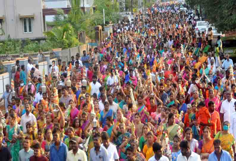 காரைக்குடி அருகே கே.வேலங்குடி பெரியநாயகி அம்மன் கோவில் பங்குனி விழாவையொட்டி ஏராளமான பெண்கள் மதுக்குடம் எடுத்து வந்து நேர்த்திக்கடன் செலுத்தினர்.