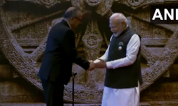 ஜி20 மாநாட்டில் பங்கேற்க பாரத் மண்டபம் வந்த உலக சுகாதார அமைப்பின் தலைவர் டிட்ரோஸ் அதானோமை பிரதமர் மோடி வரவேற்றார்.