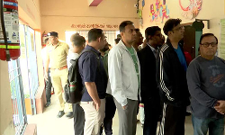 அகமதாபாத் நகரில் உள்ள பள்ளியில் பிரதமர் மோடி வாக்குசாவடி மையத்திற்கு சென்று வரிசையில் நின்று தனது வாக்கை பதிவு செய்தார்.