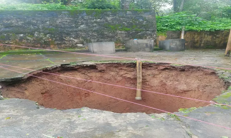 குடகு குட்டே பகுதியில் அரசு பள்ளி வளாகத்தில் இருந்த கிணற்றின் சுற்றுச்சுவர் இடிந்து விழுந்தது.