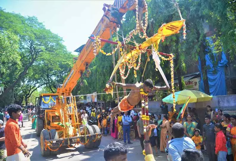 காலை 9 மணி முதல் பக்தர்கள் அலகு குத்தி, காவடி, பால்குடம் எடுத்து ஊர்வலம் சென்று சாமியை தரிசனம் செய்தனர். ஜே.சி.பி. எந்திரத்தில் பக்தர் ஒருவர் பறவை காவடி எடுத்து சென்றார். இதேபோல சில பக்தர்கள் அலகு குத்தி ஆம்னி வேன், ஆட்டோ போன்ற வாகனங்களை இழுத்து சென்றனர்.