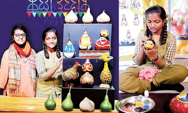 சுரைக்காய் ஓவியத்தில் அசத்தும் மாணவி..!