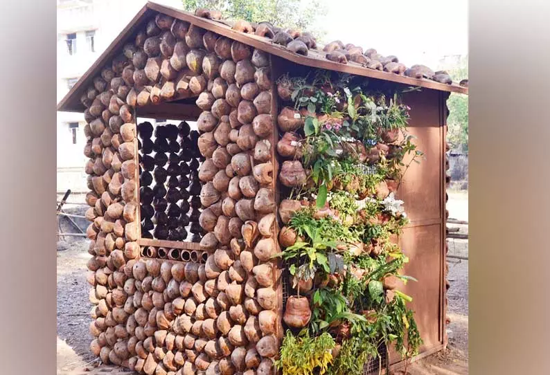 தனக்கென ஸ்பெஷலாக வீடு கட்டி வாழ்வது பலரின் லட்சியக்கனவு. அதையே சூழலுக்கு உகந்த பொருளில் பட்ஜெட்டில் கட்டினால் சூப்பர்தானே? மும்பையைச் சேர்ந்த மார்க்கெட்டிங் வல்லுநரான மனிஷ் அத்வானி, மனைவி குப்பையில் போடச்சொல்லிக் கொடுத்த தேங்காய் ஓடுகளில் செடிகளை வளர்த்தார்.