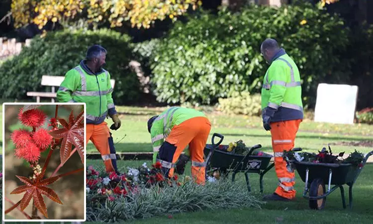 இந்த நிலையில், இங்கிலாந்தின் கோல்வின் பேவில் உள்ள குயின் கார்டன்ஸ் பூங்காவில் 'ரிசினஸ் கம்யூனிஸ்' செடி இருப்பது தெரியவந்துள்ளது.