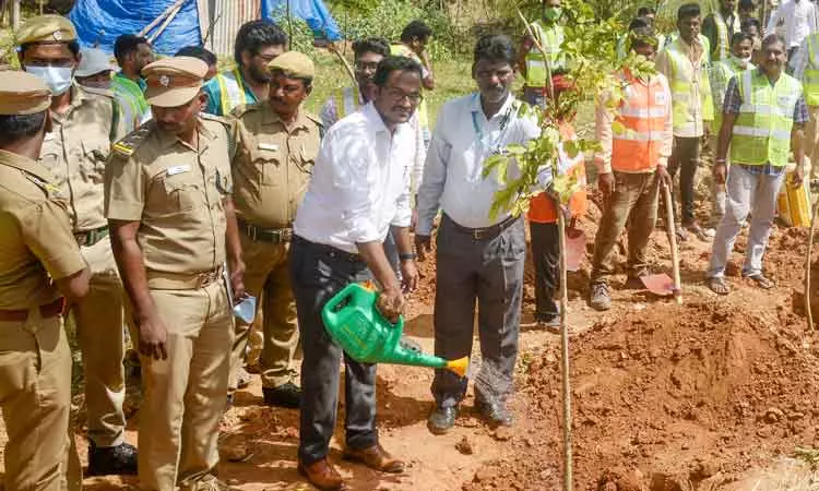 தஞ்சை-விக்ரவாண்டி புதிய புறவழிச்சாலையில் 1000 மரக்கன்றுகள் நடும் திட்டத்தை மாவட்ட வன அலுவலர் அகில்தம்பி தொடங்கி வைத்தார்.