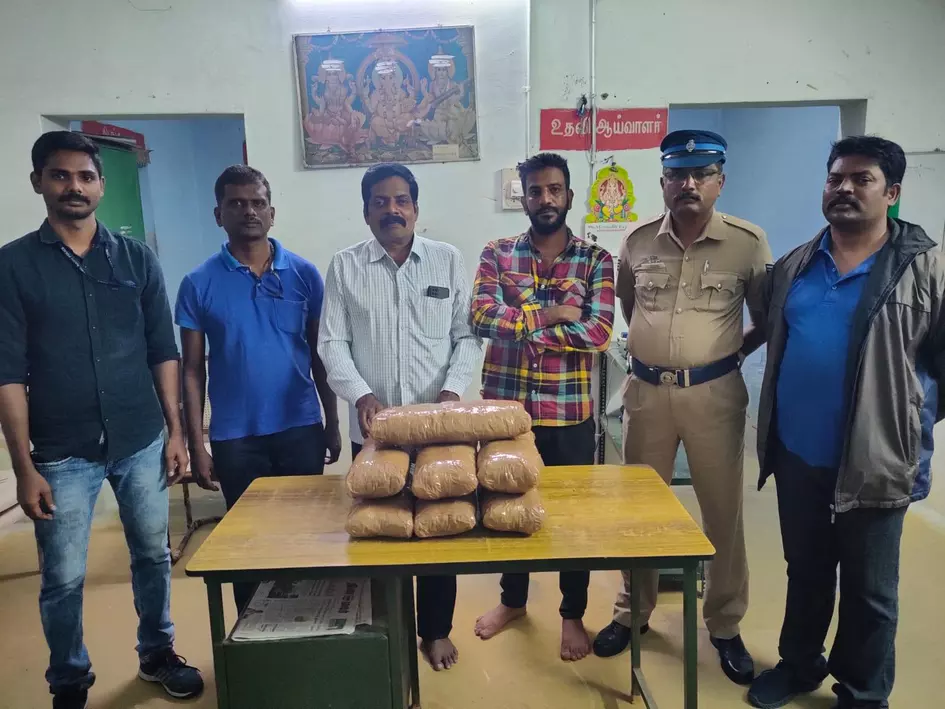 ரெயிலில் பனியன் வியாபாரியிடம் 15 கிலோ கஞ்சா பறிமுதல்