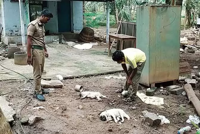 அங்கு அவர், கட்டி வைத்திருந்த விலை உயர்ந்த 2 நாய்குட்டிகள், 2 வாத்துகள் ஆகியவை பலத்த காயங்களுடன் மர்மமான முறையில் இறந்து கிடந்தன.