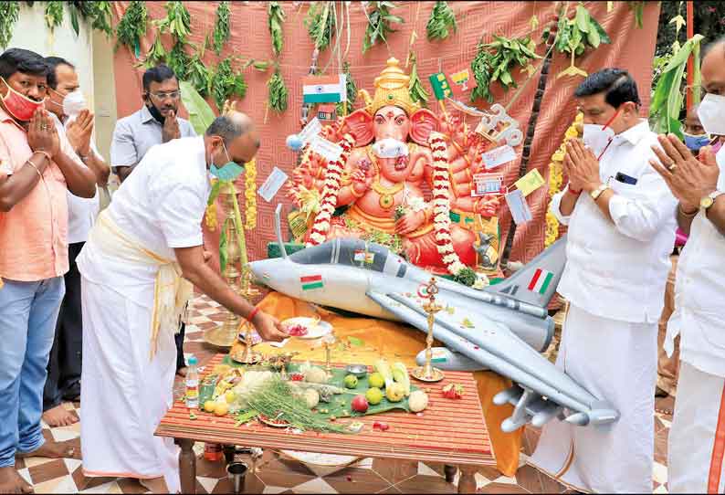பா.ஜ.க. அலுவலகத்தில் விநாயகர் சதுர்த்தி; ரபேல் போர் விமான மாதிரியில் விநாயகர் சிலை