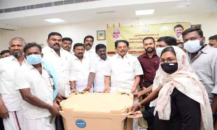 தென்காசியில் 97 பயனாளிகளுக்கு ரூ.35.56 லட்சம் மதிப்பில் நலத்திட்ட உதவிகளை அமைச்சர் கே.கே.எஸ். எஸ்.ஆர்.ராமச்சந்திரன் வழங்கினார்.