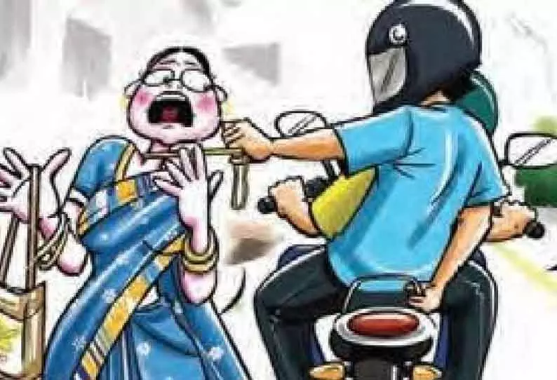 அப்போது அங்கு இருசக்கர வாகனத்தில் வந்த மர்ம நபர் ஒருவர் மீனா ராகவன் கழுத்தில் இருந்த 4½ பவுன் தங்க நகையை கண்ணிமைக்கும் நேரத்தில் கழுத்திலிருந்து பறித்து சென்றான். இதனால் நிலை தடுமாறி கீழே விழுந்த மீனாவுக்கு தலையில் பலத்த காயம் ஏற்பட்டது. இதனை பார்த்த அக்கம், பக்கத்தினர் ஓடிவந்து அவரை மீட்டு, தனியார் மருத்துவமனையில் சிகிச்சைக்காக சேர்த்தனர். இதுகுறித்த புகாரினில் பேரில் சரவணம்பட்டி போலீசார் வழக்குப்பதிவு செய்து மர்ம நபரை வலைவீசி தேடி வருகிறார்கள்.