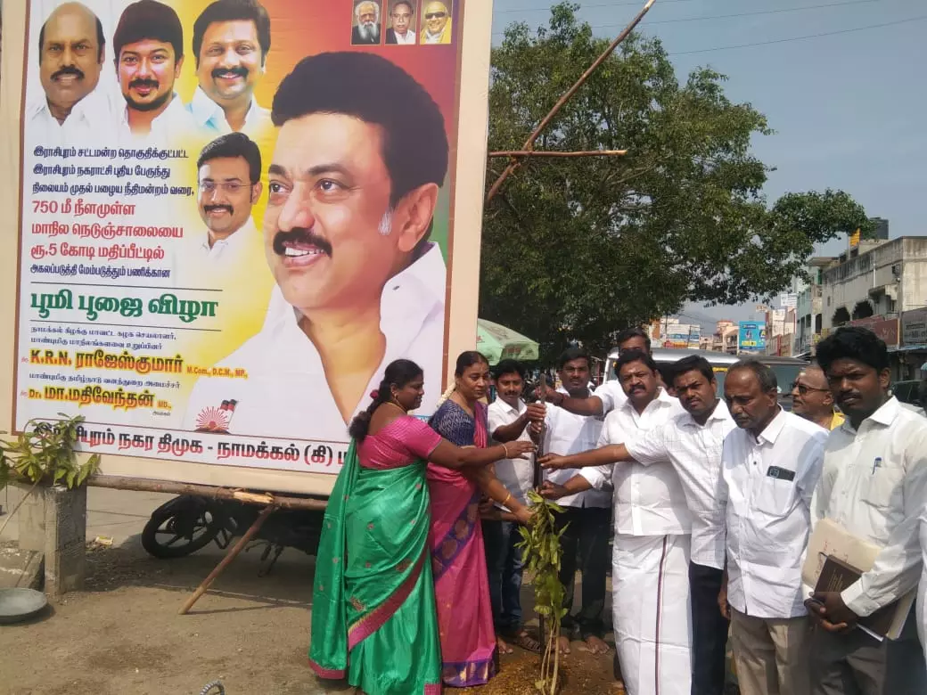 ராசிபுரத்தில் ரூ.5 கோடியில் சாலை மேம்பாட்டு பணிக்கு பூமிபூஜை