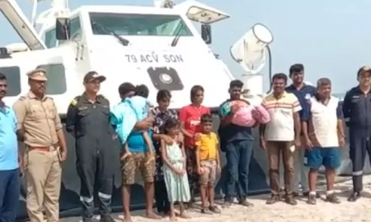 இந்நிலையில், இரண்டரை மாத கைக்குழந்தையுடன் இலங்கையில் இருந்து 8 பேர் நேற்று முன்தினம் புறப்பட்டுள்ளனர். இந்தியா- இலங்கை இடையே உள்ள மூன்றாம் மணல் திட்டு பகுதியில், இலங்கை படகோட்டிகள் அவர்களை இறக்கி விட்டு அங்கிருந்து சென்றுள்ளனர். உணவு குடிநீர் இன்றி நேற்று முழுவதும் மணல் திட்டில் அவர்கள் தவித்து வந்துள்ளனர்.