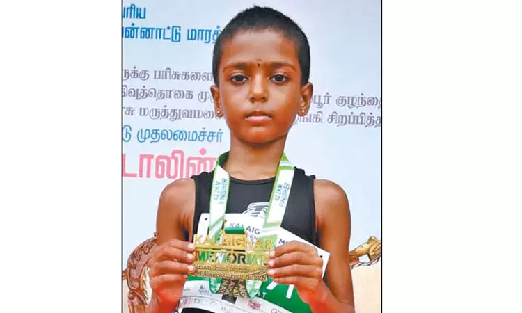 சென்னை மாரத்தான் போட்டியில் 42 கிலோ மீட்டர் ஓடிய 9 வயது சிறுமி அக்ஷிதா.