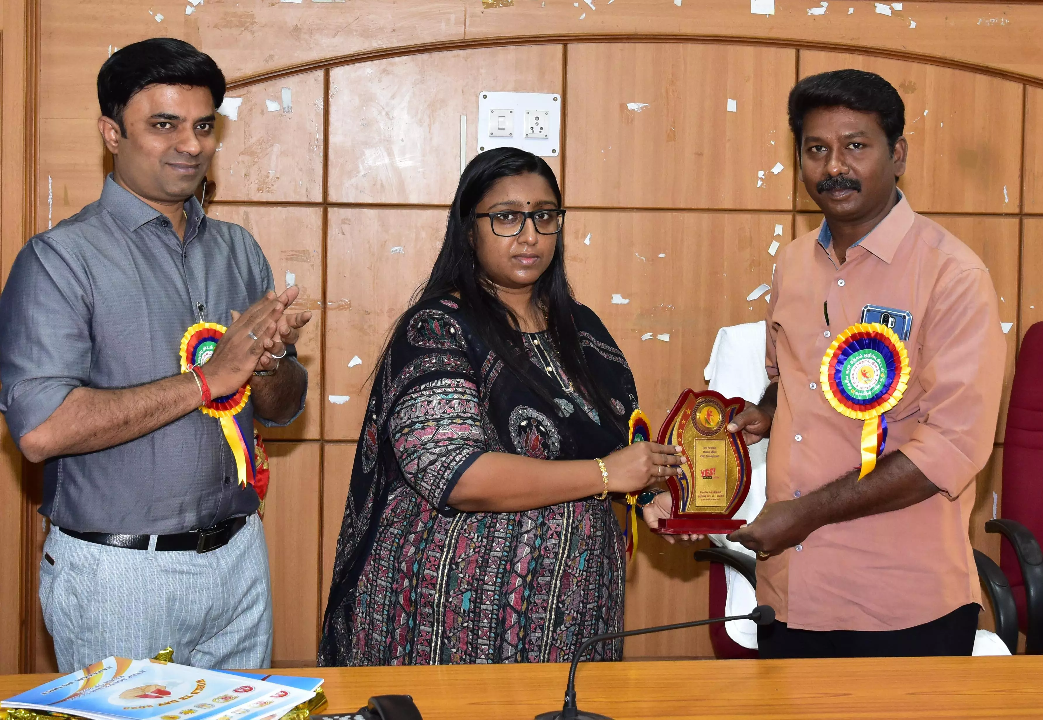 காசநோய் தடுப்பு பணியில் சிறப்பாக பணியாற்றிய மருத்துவ அலுவலர்களுக்கு கேடயங்களை வழங்கி கலெக்டர் ஸ்ரேயாசிங் பாராட்டினார்.