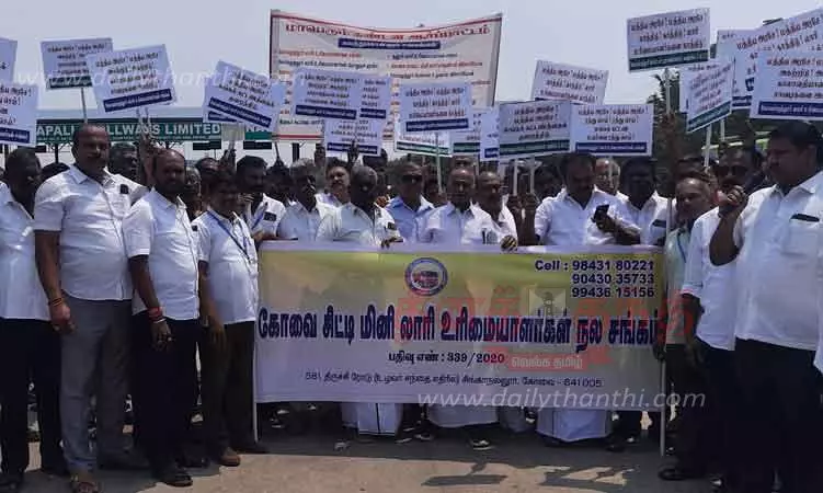 ஆர்ப்பாட்டத்தில் மாவட்ட செயலாளர் வெங்கடேசன், சங்க தலைவர்கள் சூலூர் ரவிக்குமார், அன்னூர் சரவணன், மேட்டுப் பாளையம் ரமேஷ், எம்.சுப்பிரமணியம் மற்றும் மாவட்ட லாரி உரிமையாளர் கள் சங்க நிர்வாகிகள் உள்பட 100-க்கும் மேற்பட்டோர் கலந்து கொண்டனர்.