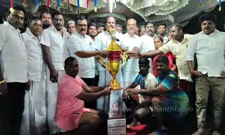 சிவகாசி மாநகர தி.மு.க. சார்பில் முதல்-அமைச்சர் மு.க.ஸ்டாலின் பிறந்தநாளையொட்டி மாவட்ட அளவிலான கபடி போட்டி திருத்தங்கல் கண்ணகி காலனியில் நடைபெற்றது. இதில் மாவட்டம் முழுவதும் இருந்து 44 அணிகள் கலந்து கொண்டன. போட்டியை சிவகாசி மாநகர செயலாளர் உதயசூரியன் தொடங்கி வைத்தார். இதில் துணை மேயர் விக்னேஷ்பிரியா காளிராஜன், மண்டல தலைவர்கள் அழகு மயில் பொன்சக்திவேல், சேவுகன், ம.தி.மு.க. கவுன்சிலர் ராஜேஷ், பகுதி செயலாளர் மாரீஸ்வரன், மாவட்ட பிரதிநிதி ராஜேஷ் ஆகியோர் கலந்து கொண்டனர். முதல் பரிசை கண்ணகி காலனி செல்லையா நினைவு கபடி குழுவினர் பெற்றனர். முதல் 8 இடங்களை பெற்ற அணிகளுக்கும் பள்ளப்பட்டி பஞ்சாயத்து முன்னாள் தலைவர் உசிலை செல்வம் நினைவு சுழற்கோப்பையை அவரது மகன் உசிலை தங்கராம் வழங்கினார். பின்னர் நடைபெற்ற பரிசளிப்பு விழாவில் மாநகர செயலாளர் உதய சூரியன், மாநில நிர்வாகியும், முன்னாள் யூனியன் தலைவருமான வனராஜா, முன்னாள் நகர்மன்ற தலைவர் சபையர் ஞானசேகரன், மண்டல தலைவர் குருசாமி, கவுன்சிலர்கள் வெயில்ராஜ், சேதுராமன், பொன்மாடத்தி, மைக்கேல், செந்தில் உள்பட பலர் கலந்து கொண்டனர். போட்டிக்கான ஏற்பாடுகளை மாவட்ட பிரதிநிதி கருப்பசாமி மற்றும் மாநகர தி.மு.க. நிர்வாகிகள் செய்திருந்தனர். செந்தில்குமார், முரளி, பால்காமராஜ், பாண்டி ஆகியோர் போட்டியின் நடுவர்களாக இருந்தனர்.
