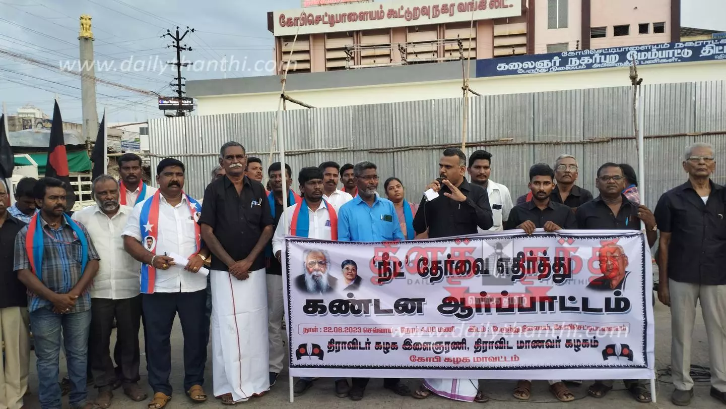 நீட் தேர்வை கண்டித்து திராவிடர் கழக இளைஞர் அணி மற்றும் திராவிட மாணவர் கழகம் சார்பில் கண்டன ஆர்ப்பாட்டம் கோபி பஸ் நிலையத்தில் நடைபெற்றது. ஆர்ப்பாட்டத்துக்கு மாநில இளைஞர் அணி துணைச் செயலாளர் வெற்றிவேல் தலைமை தாங்கினார்.