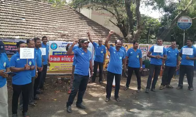 இந்த போராட்டத்துக்கு தலைவர் சேம்ராஜ் தலைமை தாங்கினார். செயலாளர் டேவிட் பிரேம், பொருளாளர் கிருஷ்ணன் ஆகியோர் முன்னிலை வகித்தனர் ஆர்ப்பாட்டத்தில் இணைச்செயலாளர் ஜெகநாதன், துணைச்செயலாளர் ராஜகுமார் உள்பட பலர் கலந்து கொண்டனர்.