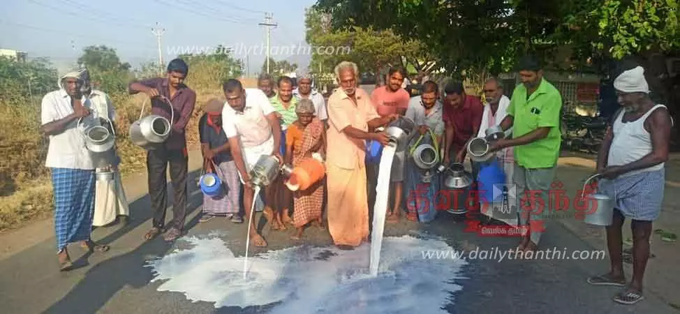 பாலை தரையில் கொட்டி உற்பத்தியாளர்கள் போராட்டத்தில் ஈடுபட்டனர்.