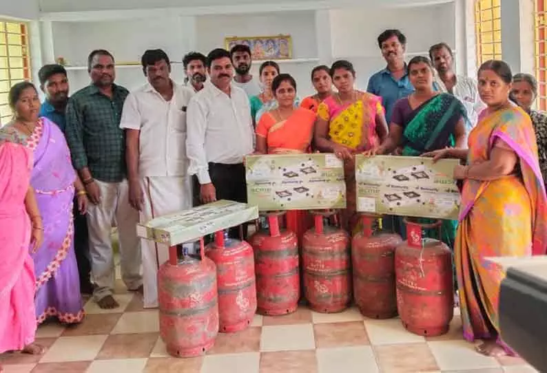 250 பேருக்கு உஜ்வாலா திட்டத்தின் மூலம் இலவச கேஸ் இணைப்பு மற்றும் அடுப்புகளை ஊராட்சி மன்ற தலைவர் லட்சுமி கார்த்திகேயன் வழங்கி பேசினார்.