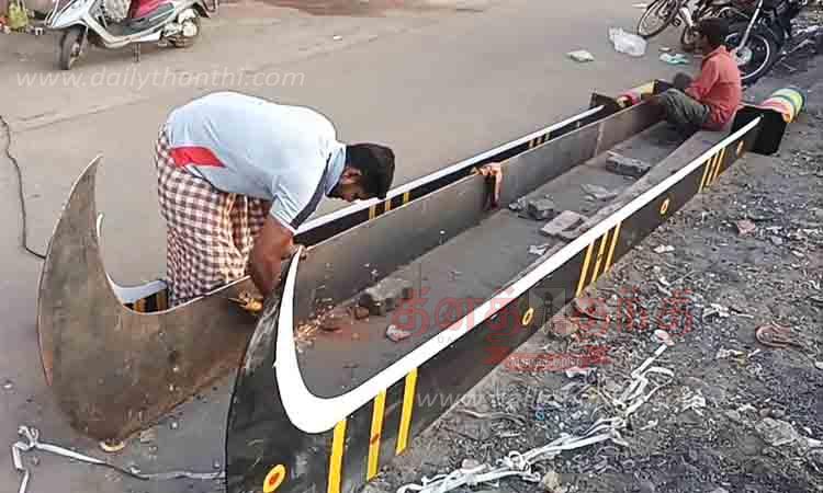 நேர்த்திக்கடனாக 3 ராட்சத அரிவாள்கள் தயாரிக்கப்பட்டன.