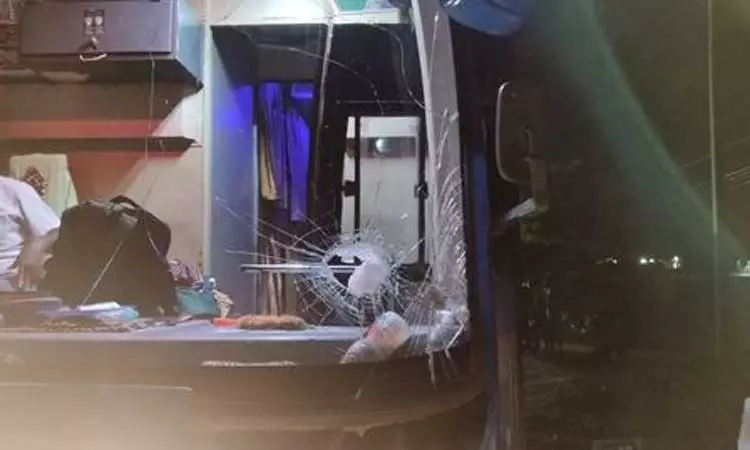 திண்டிவனம் அருகே 2 ஆம்னி பஸ்களின் கண்ணாடி உடைப்பு கல்வீசி தாக்கிய மர்மநபர்களுக்கு போலீஸ் வலைவீச்சு