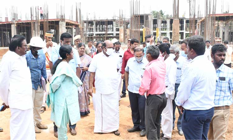 மயிலாடுதுறை மூங்கில் தோட்டம் பால்பண்ணை பகுதியில் புதிய மாவட்ட கலெக்டர் அலுவலகம் கட்டும் பணி நடந்து வருகிறது. இந்த பணியை பொதுப்பணி மற்றும் நெடுஞ்சாலைத்துறை அமைச்சர் எ.வ.வேலு நேற்று நேரில் பார்வையிட்டு ஆய்வு செய்தார்.