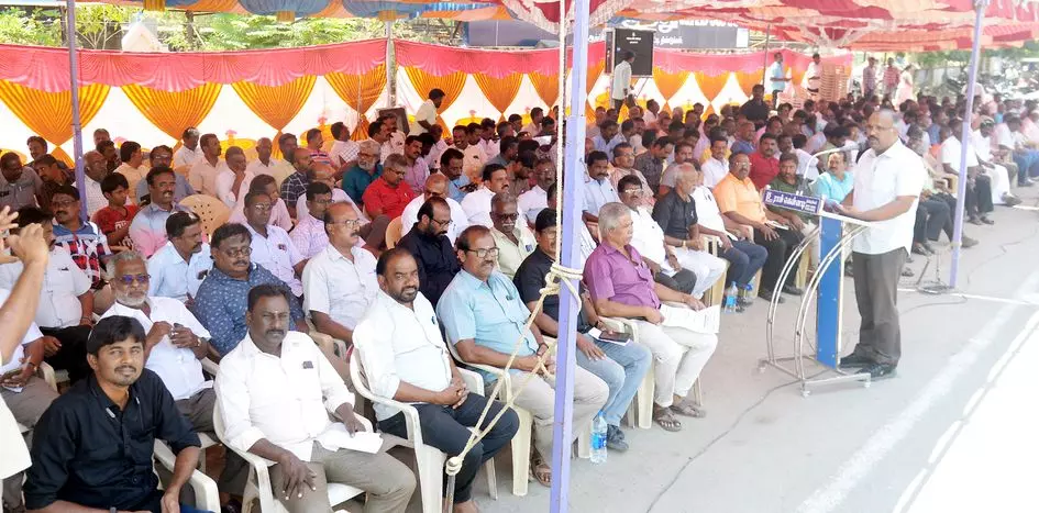 தமிழ்நாடு வருவாய்த்துறை அலுவலர் சங்க மாநிலத்தலைவர் முருகையன் சிறப்பு விருந்தினராக கலந்துகொண்டு போராட்டத்தை தொடங்கி வைத்து பேசினார். இதில் அரசு ஊழியர்கள், ஆசிரியர்கள் உள்பட ஏராளமானோர் பங்கேற்று பழைய ஓய்வூதிய திட்டத்தை உடனே அமல்படுத்த வேண்டும். இடைநிலை, முதுநிலை ஆசிரியர்களின் ஊதிய முரண்பாடுகளை களைய வேண்டும். சாலை பணியாளர்களின் 41 மாத பணிநீக்க காலத்தை முறைப்படுத்த வேண்டும் என்பன உள்பட பல்வேறு கோரிக்கைகளை வலியுறுத்தி கோஷங்களை எழுப்பினர்.