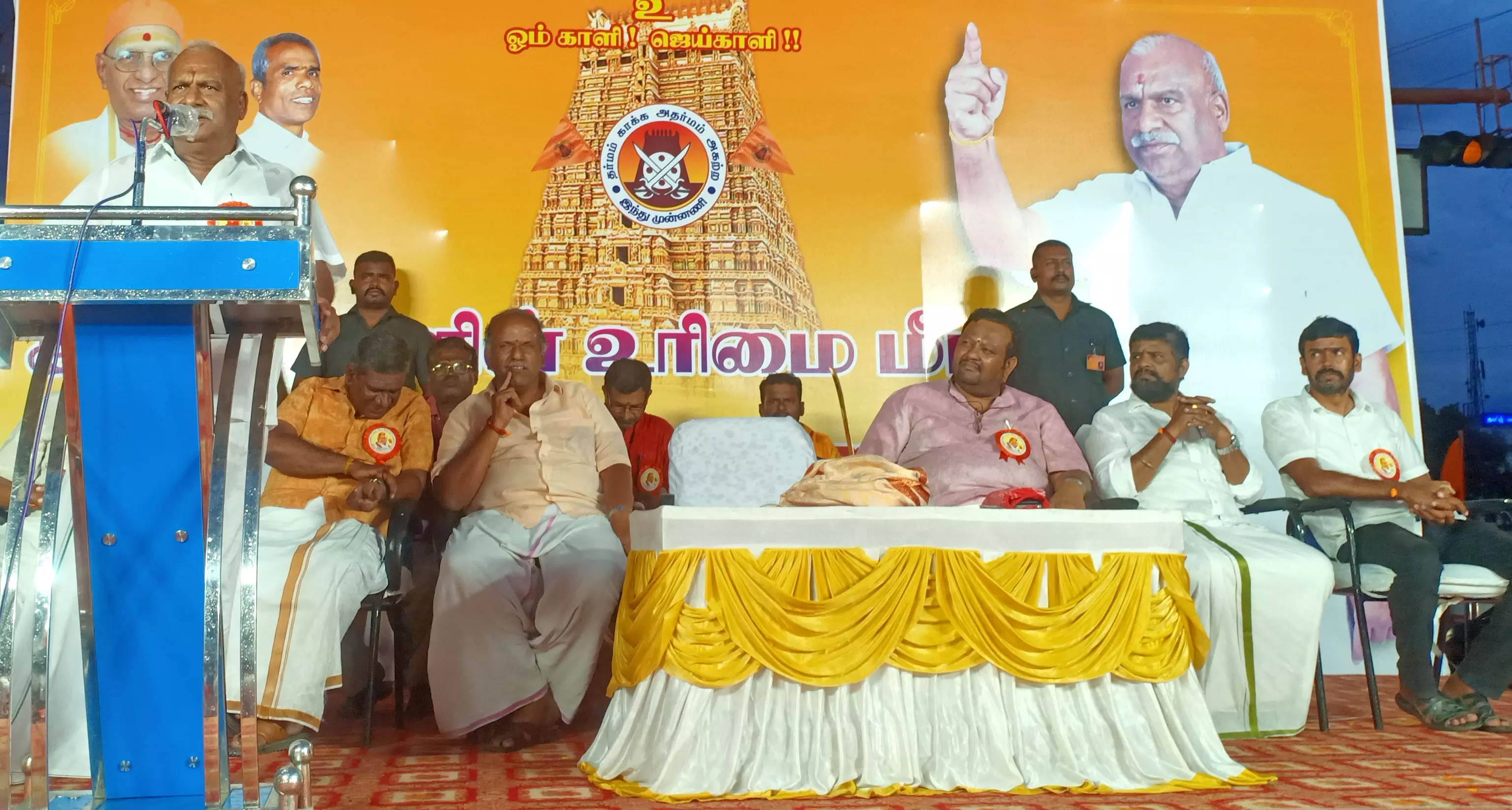 சேலம் மாநகர் மாவட்ட இந்து முன்னணி சார்பில், இந்துக்களின் உரிமை மீட்க பிரசார பயண கூட்டம் நேற்று சேலம் நாட்டாண்மை கழக கட்டிடம் முன்பு நடைபெற்றது. இதற்கு சேலம் கோட்ட தலைவர் சந்தோஸ்குமார் தலைமை தாங்கினார். மாநகர் மாவட்ட தலைவர் கண்ணன் முன்னிலை வகித்தார். கோட்ட செயலாளர் பழனிசாமி வரவேற்று பேசினார். மாநில தலைவர் காடேஸ்வரா சி.சுப்பிரமணியம் கலந்து கொண்டு பேசினார்.