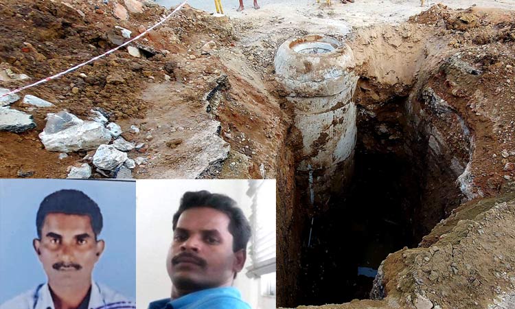 அப்போது பாதாள சாக்கடைக்காக தோண்டப்பட்ட குழிக்குள் சக்திவேல் (வயது 40) கிருஷ்ண மூர்த்தி (வயதூ 50) என்ற இருவர்கள் வேலை செய்து கொண்டு இருந்துள்ளனர். மண் சரிந்து விழுந்ததில் இருவரும் சிக்கிக் கொண்டனர்