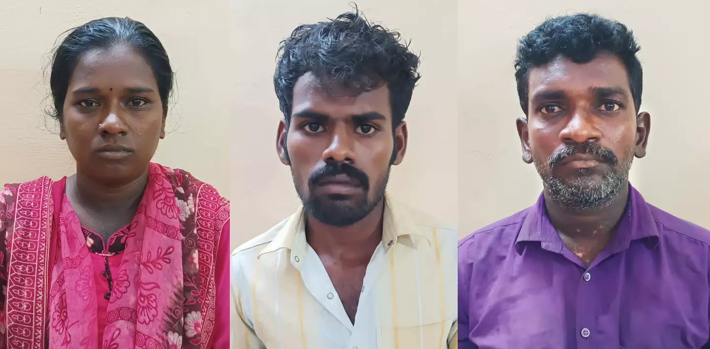 நகை-பணத்திற்காக கொத்தனார் கழுத்தை இறுக்கி படுகொலை- இளம்பெண் உள்பட 3 பேர் கைது