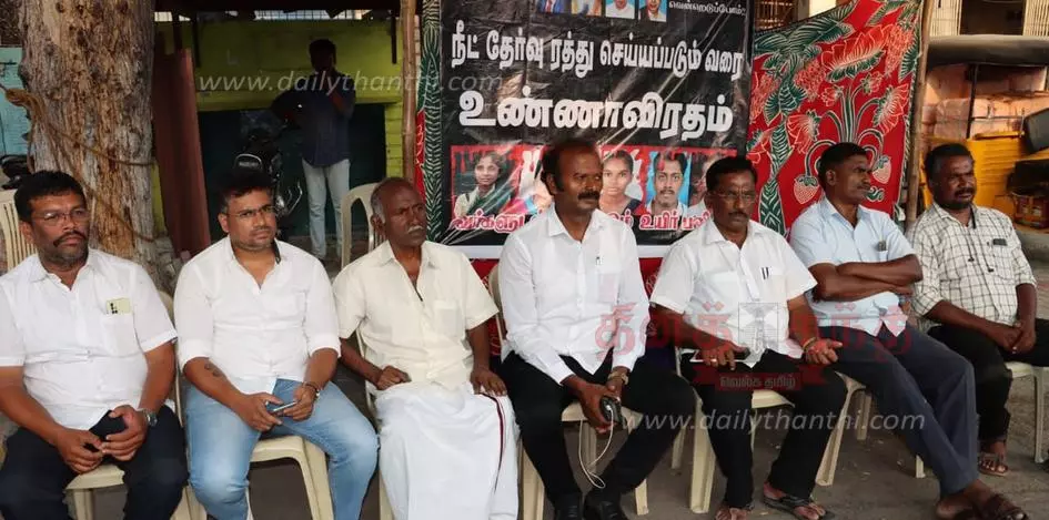 நீட் தேர்வை ரத்து செய்யப்படும் வரை சேலத்தில் ம.தி.மு.க. சார்பில் உண்ணாவிரத போராட்டம் நடைபெறும் என்று அறிவிக்கப்பட்டது. ஆனால் இந்த உண்ணாவிரதத்திற்கு போலீஸ் அனுமதி வழங்கப்படவில்லை. இருப்பினும், சேலம் மாவட்ட ம.தி.மு.க. சார்பில் கோட்டை பகுதியில் நேற்று மதியம் நீட் தேர்வை ரத்து செய்யக்கோரி உண்ணாவிரதம் நடந்தது. அரசியல் ஆலோசனைக்குழு உறுப்பினர் ஆனந்தராஜ் தலைமையில் நடந்த இந்த உண்ணாவிரத்தில் ம.தி.மு.க.வினர் கலந்து கொண்டனர். அப்போது, நீட் தேர்வு ரத்து செய்யப்படும் வரை உண்ணாவிரதம் இருக்க அனுமதி கிடையாது என்றும், ஒருநாள் மட்டுமே உண்ணாவிரதம் இருக்க அனுமதி வழங்கப்படுவதாக போலீஸ் தரப்பில் கூறப்பட்டது. இதையடுத்து நிர்வாகிகள் மாலை 6 மணிக்கு உண்ணாவிரதத்தை முடித்துவிட்டு அங்கிருந்து கலைந்து சென்றனர்.