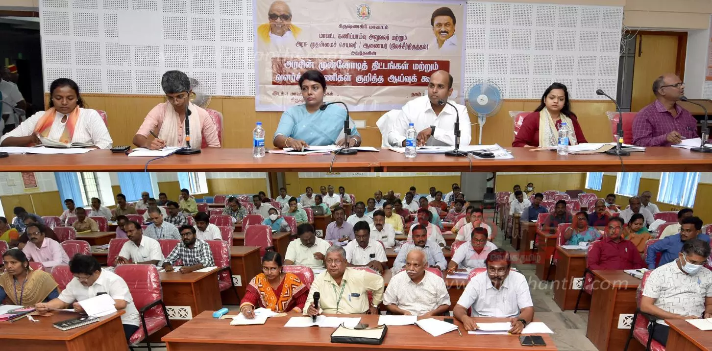 கிருஷ்ணகிரி மாவட்டத்தில் கலைஞரின் அனைத்து கிராம ஒருங்கிணைந்த வேளாண் வளர்ச்சி திட்டம், அனைத்து கிராம அண்ணா மறுமலர்ச்சி திட்டம், சமத்துவபுரம் வீடுகள் புனரமைப்பு பணிகள், 15-வது நிதிக்குழு திட்டப்பணிகள், வருவாய் துறை சார்பாக பட்டா வழங்க கோரி நிலுவையில் உள்ள மனுக்கள் மீது எடுக்கப்பட்ட நடவடிக்கைகள், எண்ணும் எழுத்தும் இயக்கம், பள்ளி கட்டிடங்கள் பழுதுபார்ப்பு மற்றும் சீரமைக்கும் பணிகள் உள்ளிட்ட அரசு துறை வாரியாக நடைபெற்று வரும் பணிகள் குறித்து விரிவாக ஆய்வு மேற்கொள்ளப்பட்டது.