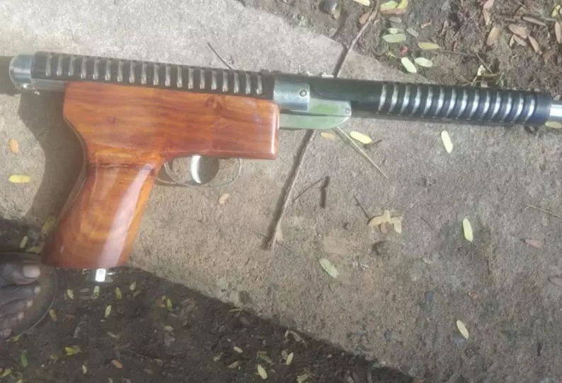 அந்த கையடக்க ஏர்கன் பயன்படுத்த முடியாத அளவிற்கு பழுதடைந்து இருப்பதால் யாரேனும் குப்பைத் தொட்டியில் வீசி சென்று இருக்கலாம் என போலீசார் தரப்பில் தகவல் தெரிவிக்கின்றனர்.