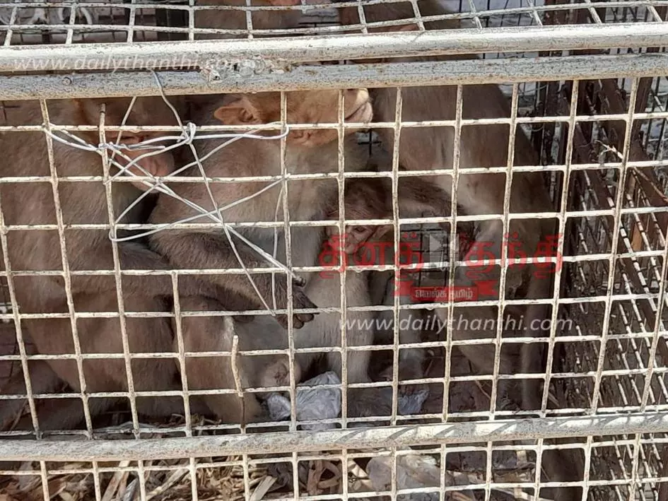 தினத்தந்தி செய்தி எதிரொலியாக சென்னிமலையில் அட்டகாசம் செய்யும் குரங்குகளை பிடிக்க கூண்டு அமைக்கப்பட்டுள்ளது.