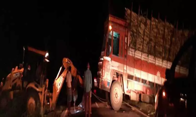 ஆசனூர் அருகே பள்ளத்தில் லாரி இறங்கியது