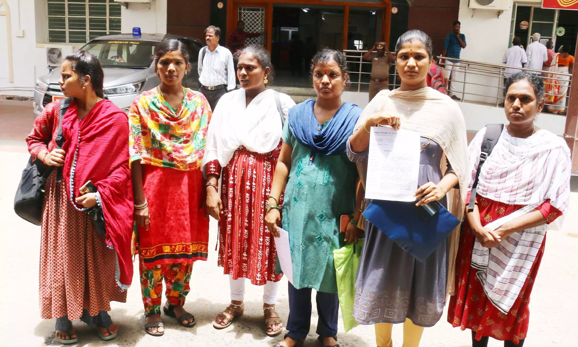 கொரோனா பேரிடர் பெருந்தொற்று காலத்தில் பணியமர்த்தப்பட்டு அதன் பிறகு பணிநீக்கம் செய்யப்பட்ட செவிலியர்கள் மாவட்ட கலெக்டர் அலுவலகத்தில் ஒரு கோரிக்கை மனு கொடுத்தனர். அந்த மனுவில் அவர்கள் கூறியிருப்பதாவது:-
