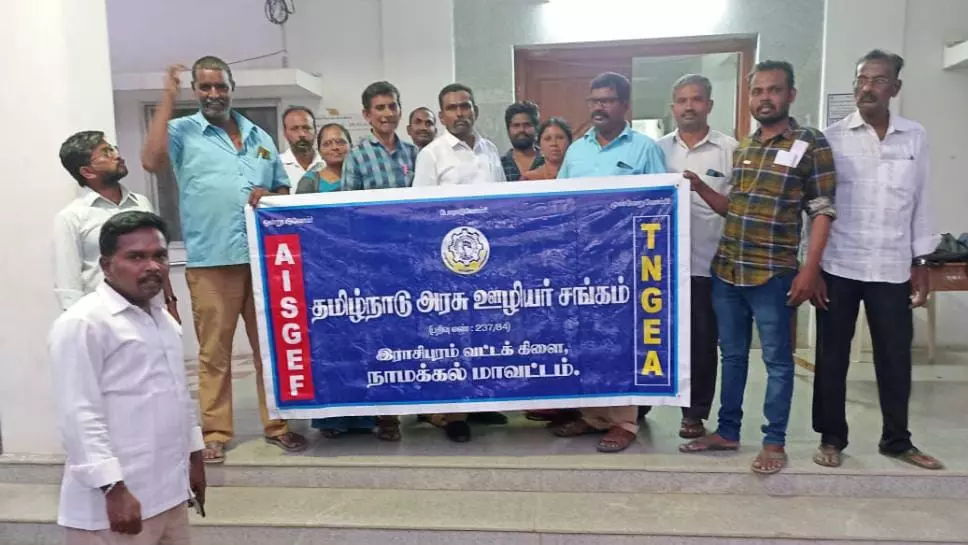 ராசிபுரத்தில் அரசு ஊழியர்கள் சங்கத்தினர் ஆர்ப்பாட்டம்