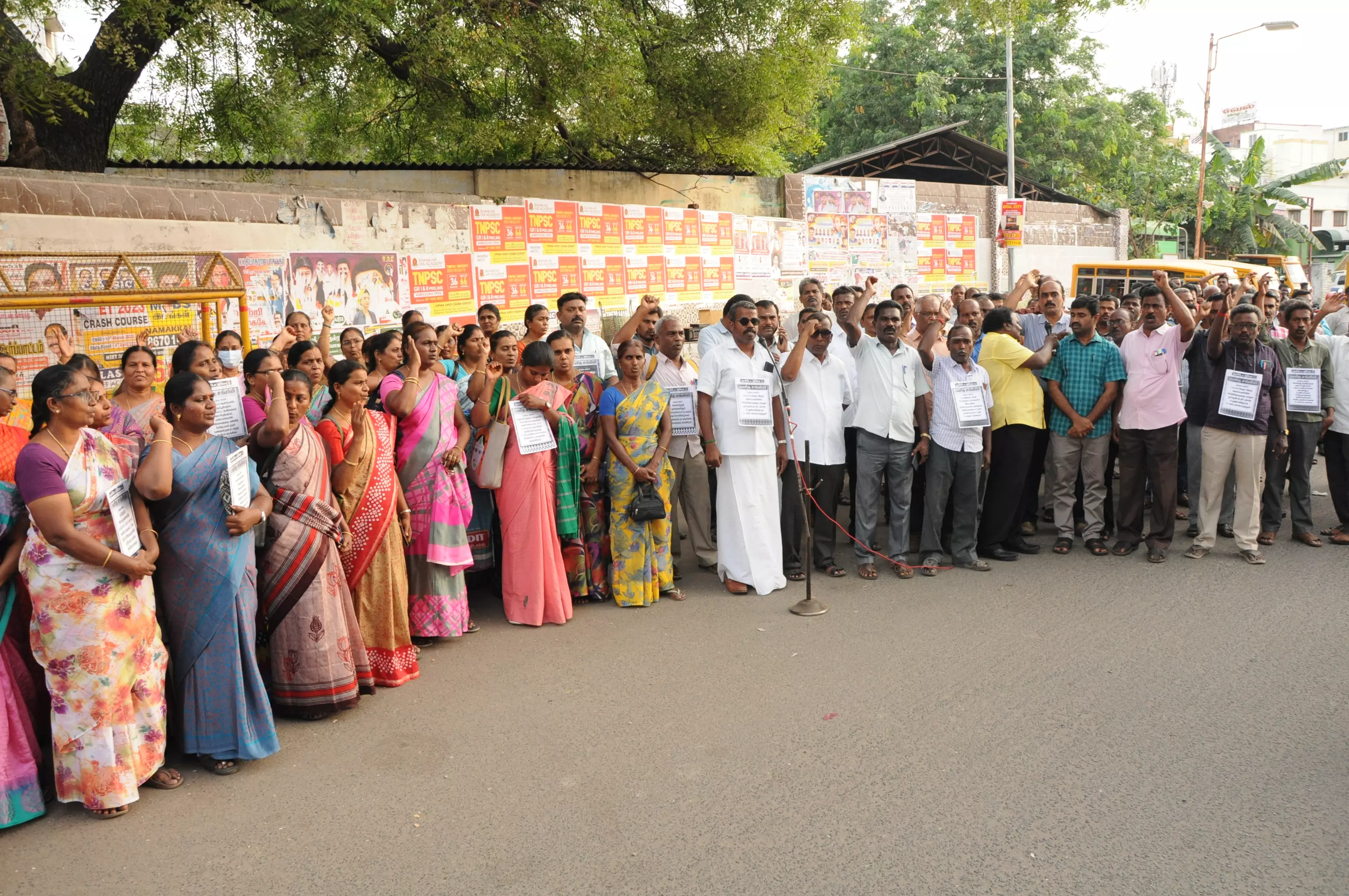 அதேபோல் அரசுத்துறைகளில் காலியாக உள்ள 6 லட்சம் காலி பணியிடங்களை உடனடியாக நிரப்ப வேண்டும். ஆசிரியர்கள் மற்றும் அரசு ஊழியர்களின் ஊதிய முரண்பாடுகளை களைய வேண்டும் என்பன உள்பட பல்வேறு கோரிக்கைகளை வலியுறுத்தி முழக்கங்கள் எழுப்பப்பட்டன.