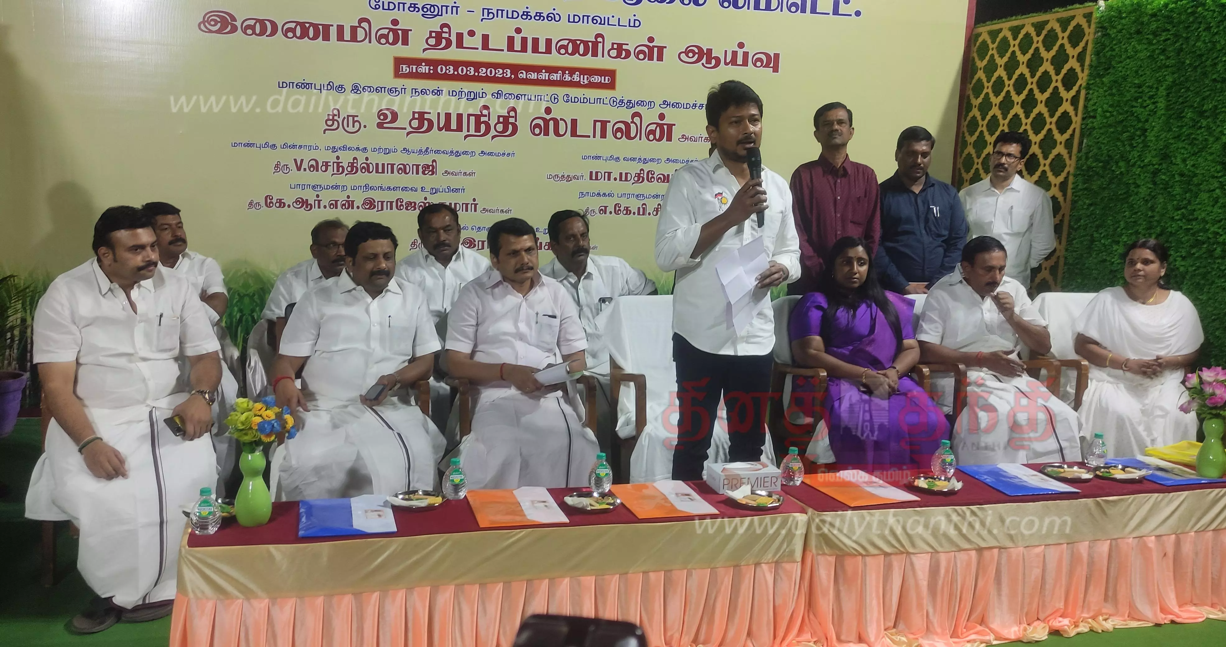 தமிழக இளைஞர் நலம் மற்றும் விளையாட்டு மேம்பாட்டு துறை அமைச்சர் உதயநிதி ஸ்டாலின் பேசும்போது, தமிழ்நாடு முதல்-அமைச்சர் இப்பகுதி கரும்பு விவசாயிகளின் கோரிக்கைகளை ஏற்று, மோகனூர் சர்க்கரை ஆலையில், இணை மின் உற்பத்தி நிலையத்தை விரைவில் பயன்பாட்டிற்கு கொண்டு வர உத்தரவிட்டுள்ளார். அதன் அடிப்படையில் வரும் ஜூலை மாதத்திற்குள், அனைத்து பணிகளும் முடிக்கப்பட்டு, இணைய மின் உற்பத்தி நிலையத்தில் இருந்து மின்சாரம் உற்பத்தி செய்யப்படும்.