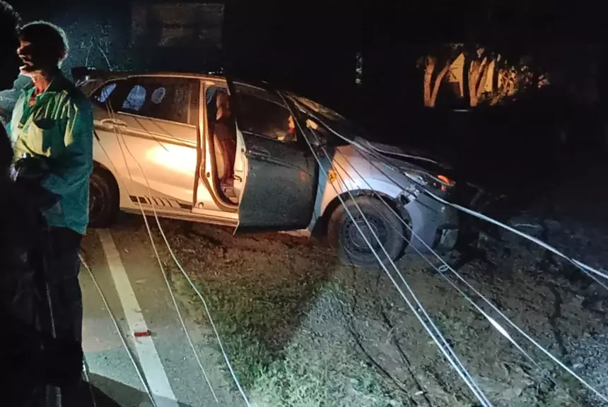 மின்கம்பங்கள் மீது மோதிய கார்