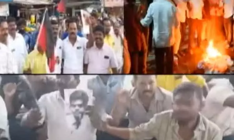 நிதியமைச்சர் கார் மீது காலணி வீச்சு: பாஜகவினரை கண்டித்து திமுக போராட்டம்- அண்ணாமலை படம் எரிப்பு