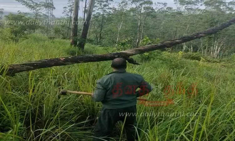 பந்தலூரில் பலத்த மழையால் மின் கம்பிகள் மீது மரங்கள் விழுந்தன.