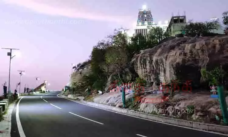 சோலார் மின்விளக்குகளால் விராலிமலை முருகன் கோவில் ஜொலிக்கிறது.